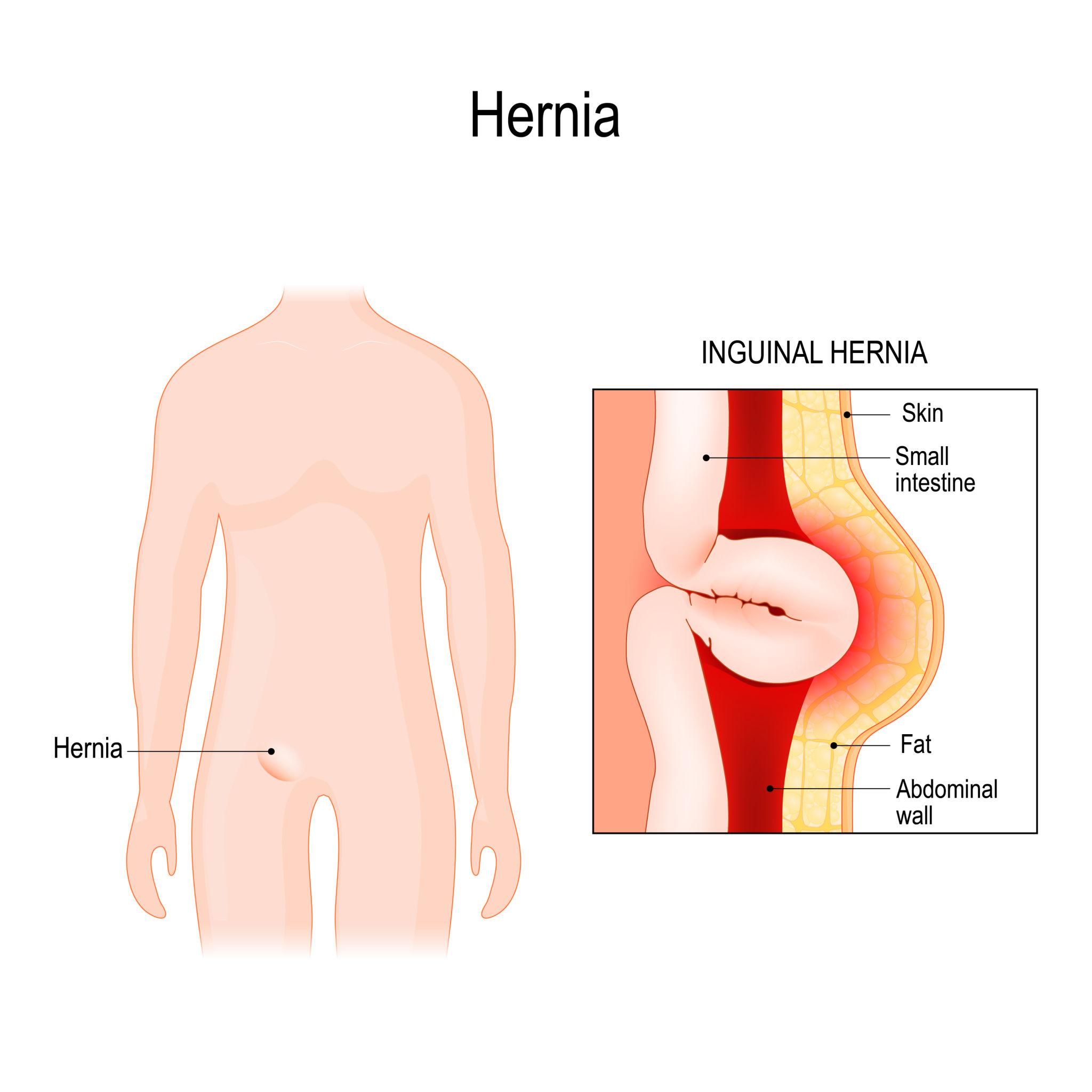 A hernia occurs when an internal organ or tissue pushes through a weak spot in the surrounding muscle or connective tissue. It commonly appears as a visible bulge and may increase over time.